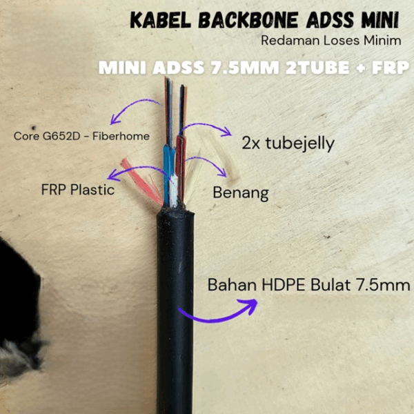 Fiber Optic KU (Kabel Udara) / Aerial Mini ADSS G652D 24 Core 2-TUBE [ Meter ]