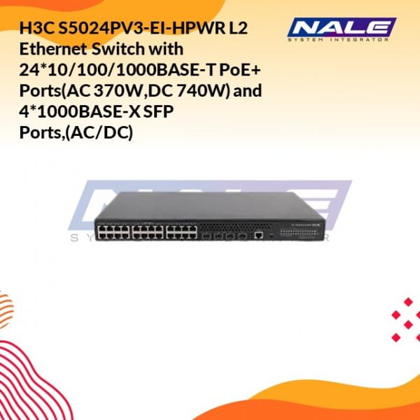 H3C S5024PV3-EI-HPWR L2 Ethernet Switch with 24*10/100/1000BASE-T PoE+ Ports(AC 370W,DC 740W) and 4*1000BASE-X SFP Ports,(AC/DC)