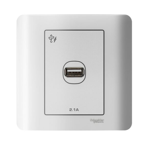 Schneider ZENcelo – 1 x 2.1A USB Charger – White [E8431USB_WE]