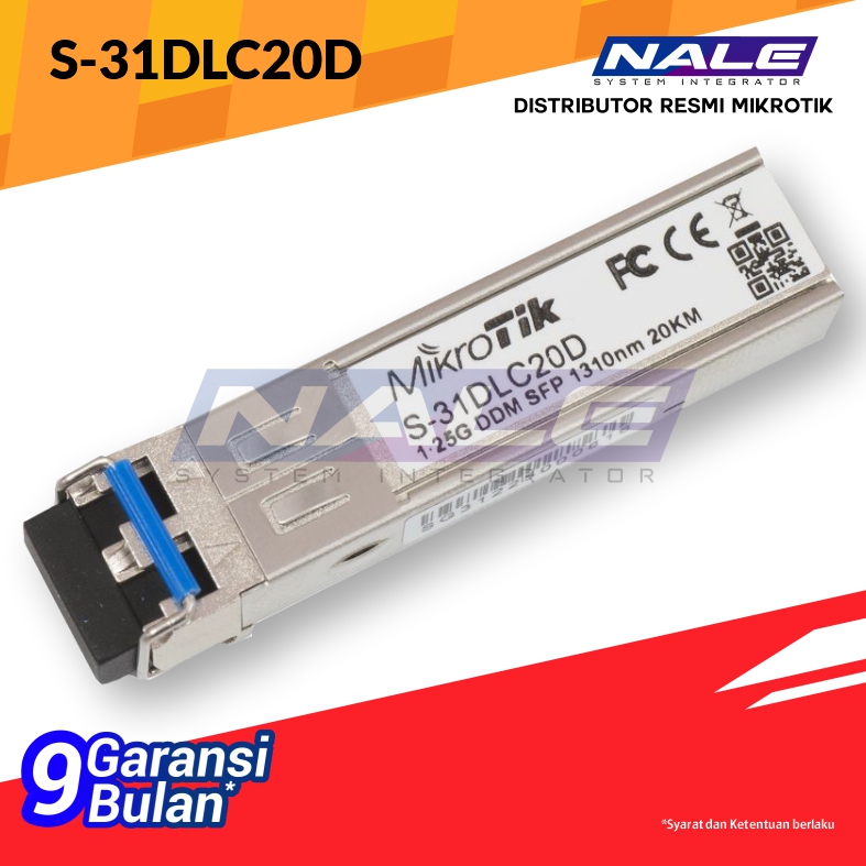 S-31DLC20D adalah transceiver SFP 1,25G dengan konektor Dual LC 1310nm, untuk koneksi serat Mode Tunggal hingga 20 kilometer, dengan unit DDM yang diuji dan kompatibel dengan RB260GS, RB2011LS, RB2011LS-IN, RB2011UAS-IN, RB2011UAS-RM, RB2011UAS-2HnD, RB2011UAS-2HnD-IN, dan CCR1036-12G-4S. Unit juga kompatibel dengan perangkat SFP non-MikroTik.