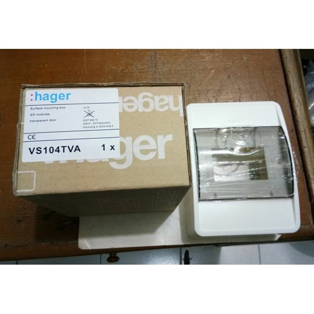 Box MCB 4 group Tipe VS104TVA Icos Transparan untuk Penutup MCB Merk Hager.. Tipe Outbow (Dipasang di luar Tembok).. Pintu Transparan dan Pintu dibuka ke Atas.