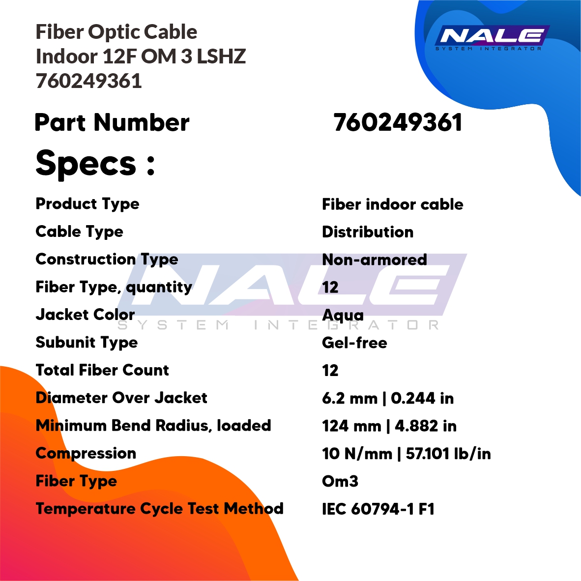 Fiber Optic Cable, Indoor, 12F, OM3, LSZH (760249361)