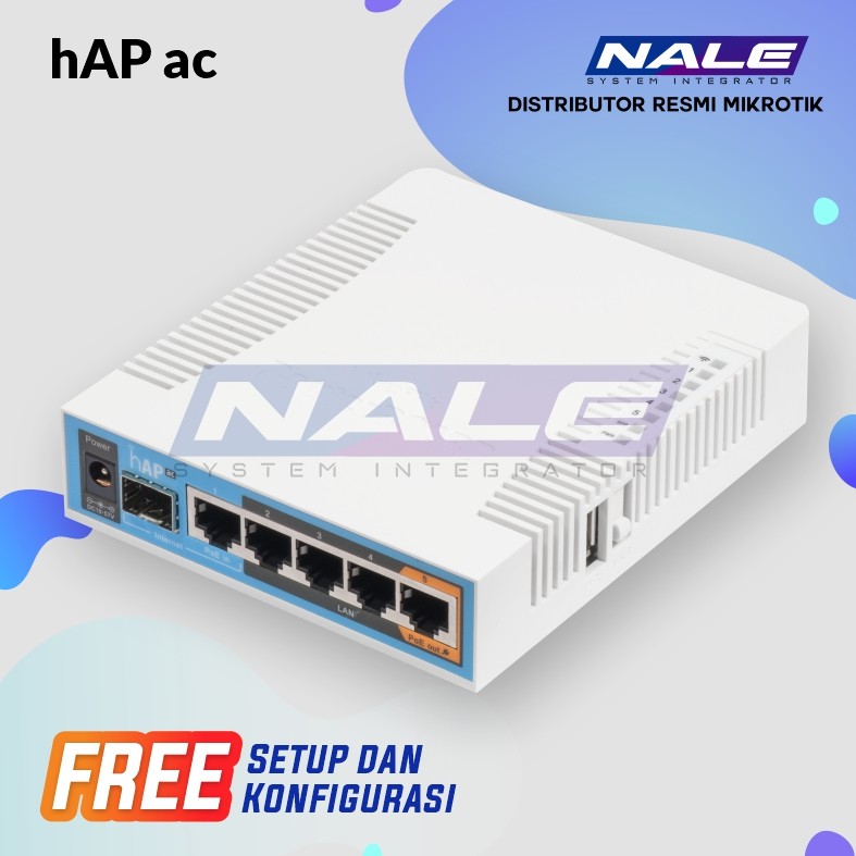 [vc_row][vc_column][woodmart_title align=”left” tag=”h2″ woodmart_css_id=”602dea0bcc678″ title=”Deskripsi Mikrotik hAP ac” woodmart_empty_space=”” title_width=”100″][vc_column_text text_larger=”no”]HAP ac adalah perangkat nirkabel rumah atau kantor kami yang paling universal. Ini adalah perangkat dual band dengan port Gigabit yang memungkinkan keuntungan penuh dari kecepatan teknologi 802.11ac, dengan tetap mempertahankan kompatibilitas dengan perangkat lama dalam mode 2GHz 802.11 b / g / n dan 5GHz a / n.[/vc_column_text][vc_column_text text_larger=”no”]Spesifikasi singkat: