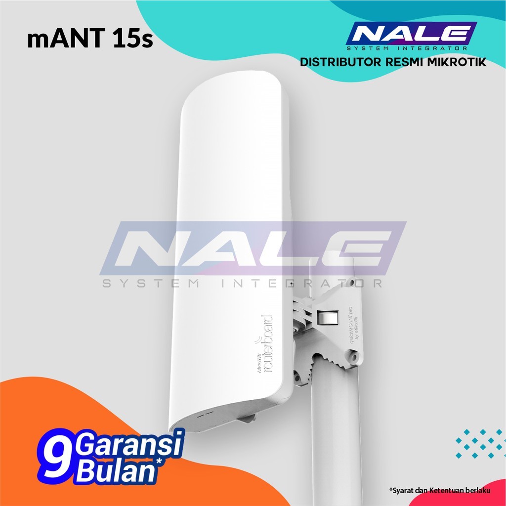 [vc_row][vc_column][woodmart_title align=”left” tag=”h2″ woodmart_css_id=”5ffc42f563c1b” title=”Deskripsi Mikrotik mANT 15s” woodmart_empty_space=”” title_width=”100″][vc_column_text text_larger=”no”]MANT adalah antena beamwidth 15dBi 120 derajat polarisasi ganda dengan dua konektor RP-SMA. Ini kompatibel dengan dudukan tipe SXT, sehingga Anda dapat menggunakannya dengan sistem QuickMount kami yang tahan lama dan dapat disesuaikan. Termasuk dengan quickMOUNT PRO.[/vc_column_text][vc_column_text text_larger=”no”]Spesifikasi singkat: