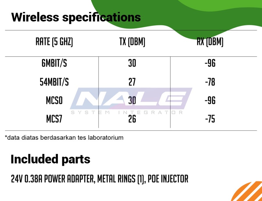 *sudah termasuk 24V 0.38A power adapter, Metal rings (1), PoE injector