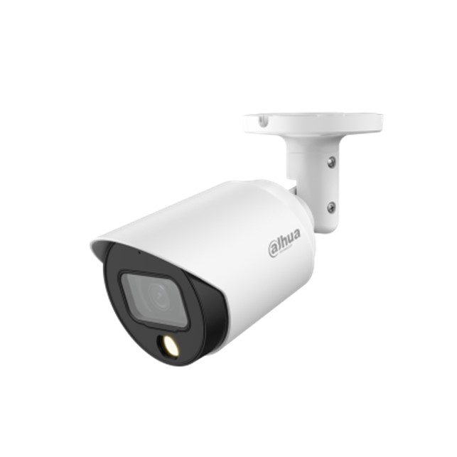 Dahua DH-HAC-HFW1509TLMP-A-LED , 5MP Full-color HDCVI Bullet Camera dilengkapi dengan Max 25 fps@5MP (16:9 video output), 120 dB true WDR, 3D NR, 24/7 color imaging, 40 m illumination distance, CVI/CVBS/AHD/TVI switchable, Built-in mic (-A), 3.6 mm fixed lens (2.8 mm optional), IP67, 12 V DC
