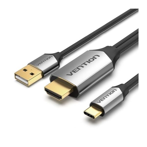 Vention Type-C to HDMI Cable with USB Power Supply 2M Black Metal Type (CGTBH)