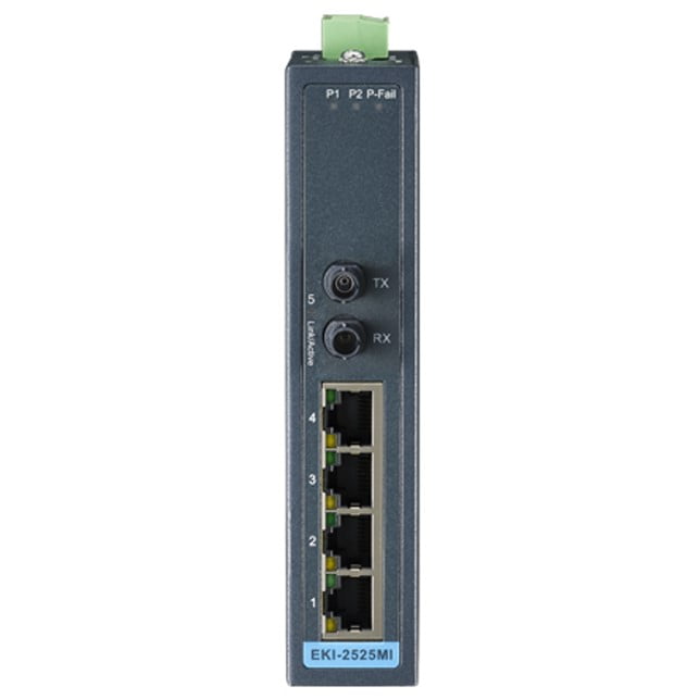 Advantech 4 + 1FX ST Multi-Mode unmanaged Ethernet switch (EKI-2525MI-ST-BE)