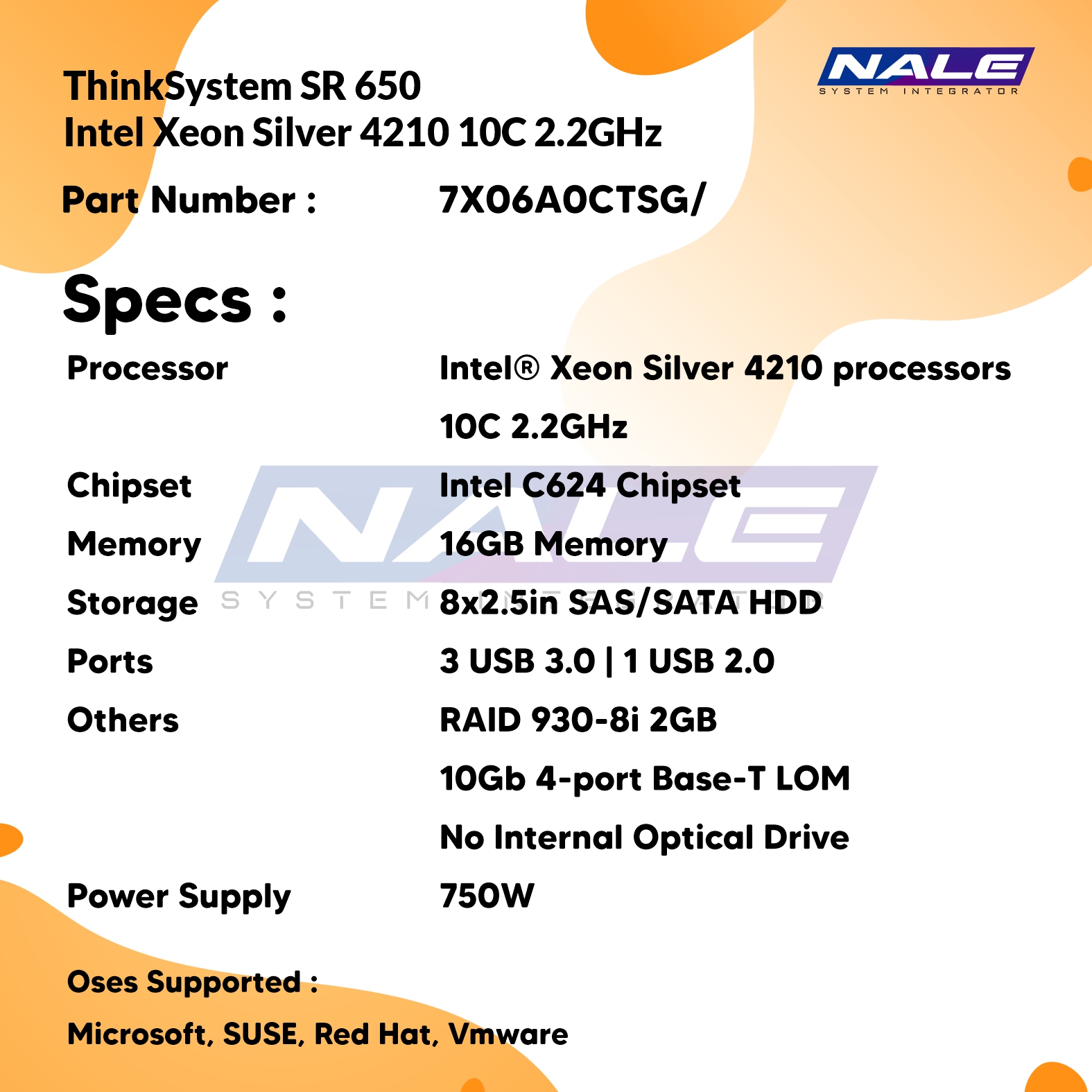 - Others : RAID 930-8i 2GB | 10Gb 4-port Base-T LOM | No Internal Optical Drive
