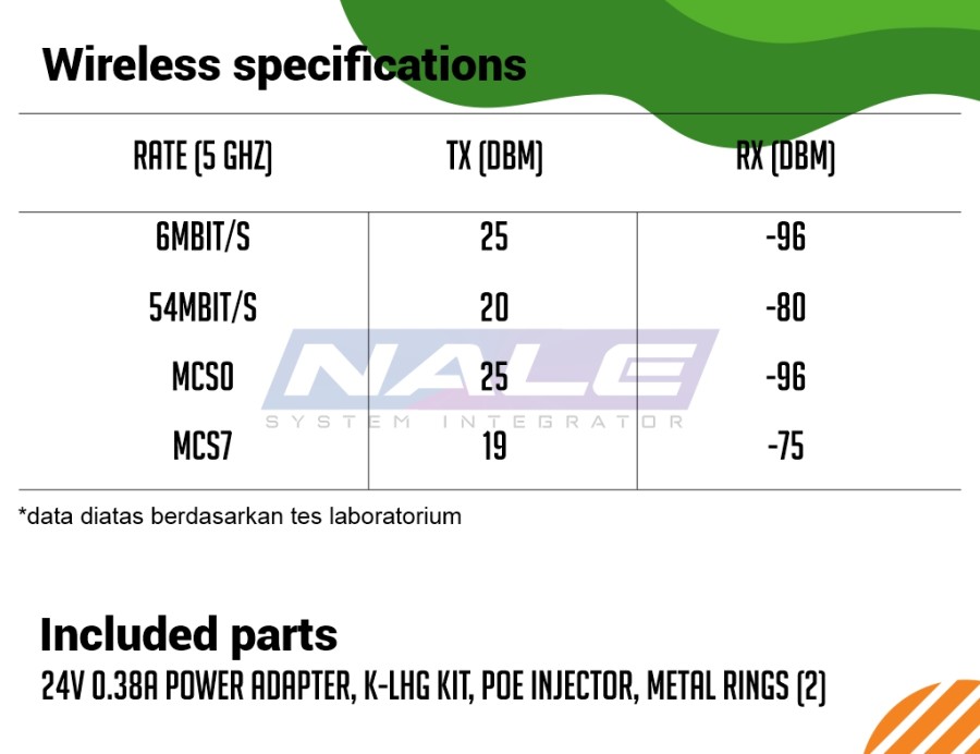 *sudah termasuk 24V 0.38A power adapter, K-LHG kit, PoE injector, Metal rings (2)