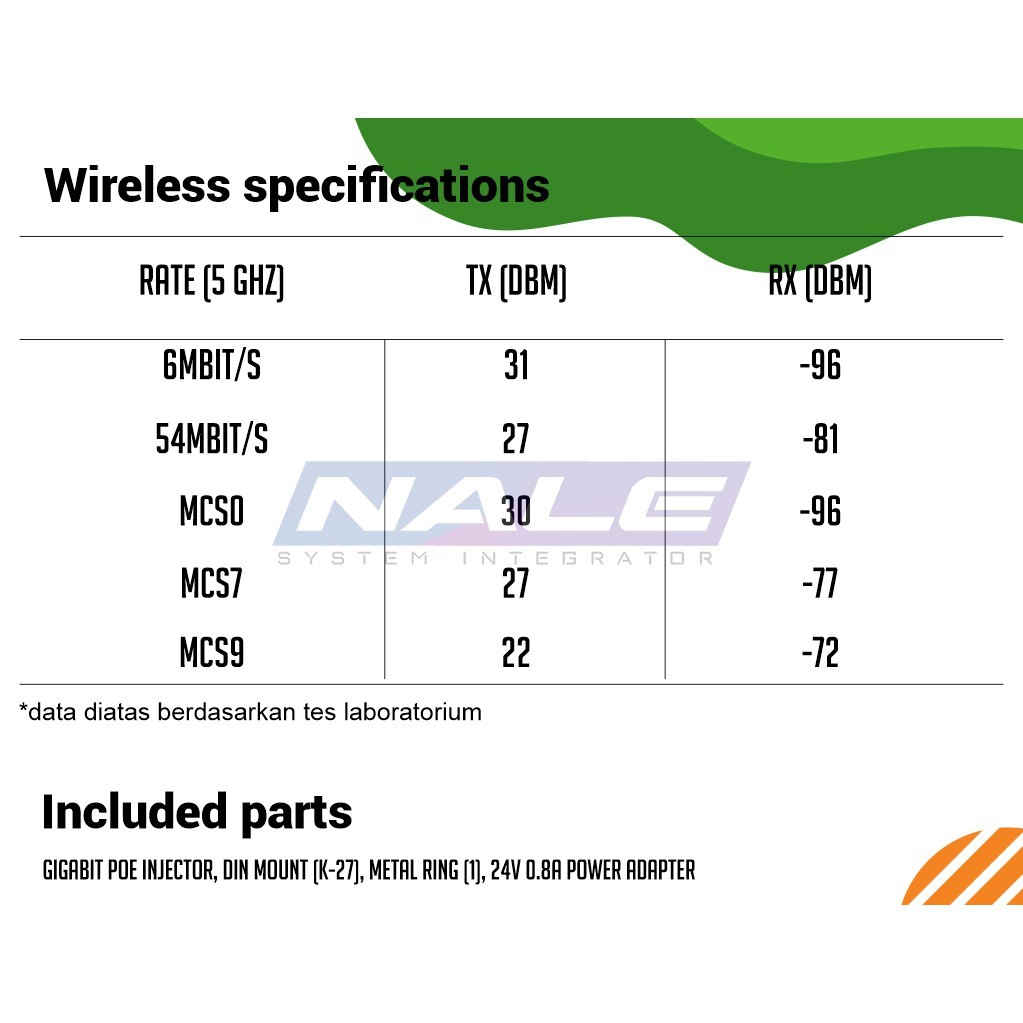 *sudah termasuk Gigabit PoE injector, DIN mount (K-27), Metal ring (one), 24V 0.8A power adapter